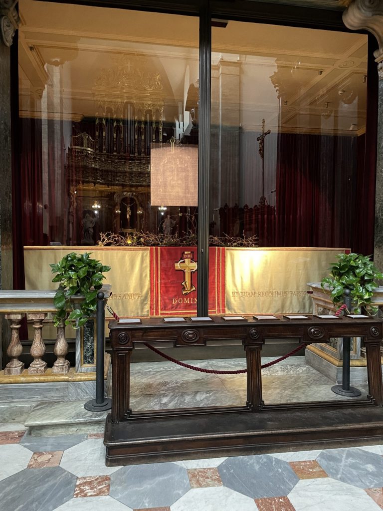Ich hatte erwartet, dass der Dom voller Menschen wäre, aber tatsächlich waren nur wenige Besucher da, die still meditierten. Eine sehr schöne, konzentrierte Stimmung. Seit dem 14. Jahrhundert wird das Tuch verehrt; damals tauchte es erstmals in Frankreich auf, bevor es nach Turin gelangte. Ob es nun echt ist oder nicht – die Nähe zu ihm erfüllt den Raum mit einer besonderen Spannung.