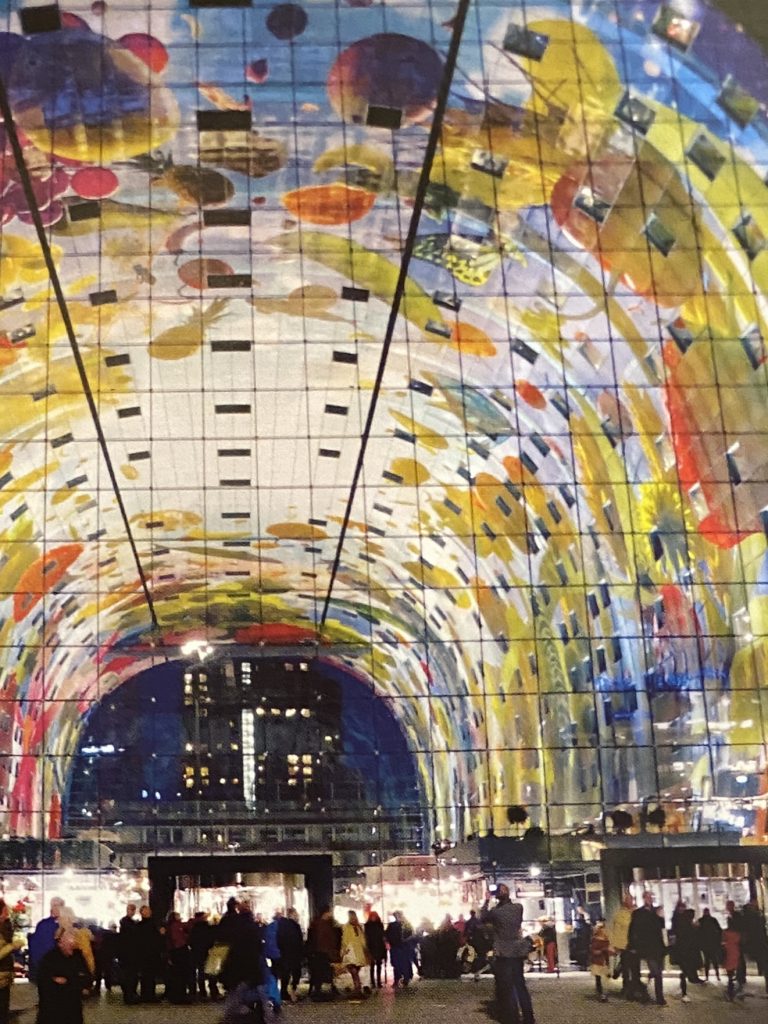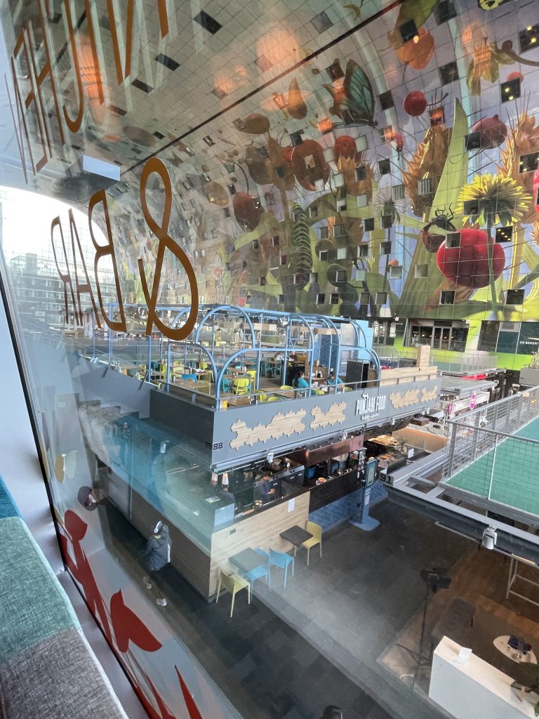 Die Markthalle von Rotterdam erinnert mich an den Film „Inception“. In dem großartigen Film wird Architektur als Mittel zur Manipulation von Realität eingesetzt – ähnlich wie die Markthalle in Rotterdam mit ihrer monumentalen Form und dem floralen Deckengemälde eine fast traumhafte Welt erschafft. Beide Orte spielen mit Wahrnehmung: Die Traumarchitektur des Films und die reale Struktur der Halle verwischen Grenzen zwischen Funktion und Fantasie. Wie Ariadne im Film entwirft auch Rotterdam eine Umgebung, die staunen lässt und die Vorstellungskraft herausfordert.