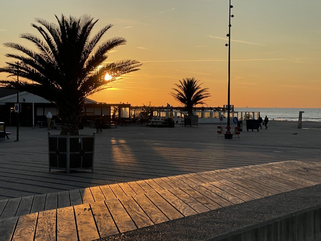 Mit der Metro geht es schließlich nach Hoek van Holland, dem kleinen Küstenort, der morgen früh mein Sprungbrett nach England wird. HvH ist mehr als nur ein Fährhafen – es ist ein verstecktes Juwel mit einem fantastischen, 3,5 Kilometer langen und bis zu 250 Meter breiten Sandstrand, nur zwei Kilometer vom Hotel entfernt. Der feinste Sand, den die Nordsee zu bieten hat.