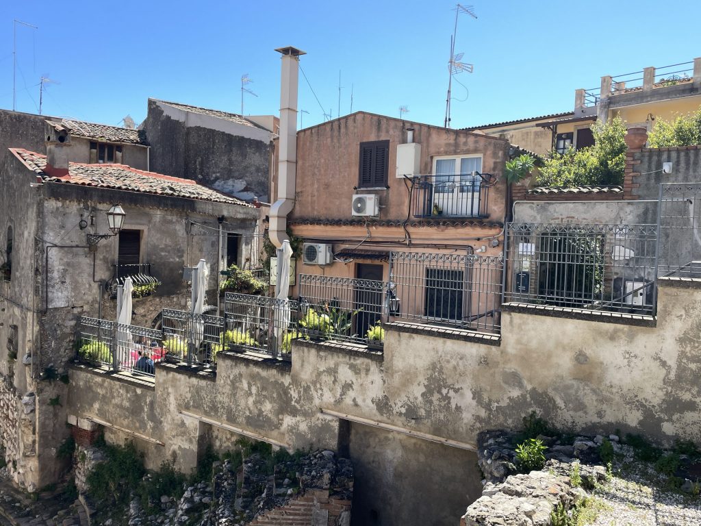 Zu Mittag aß ich in Ruhe in dem kleinen Lokal oberhalb des kleineren Teatros von Taormina.