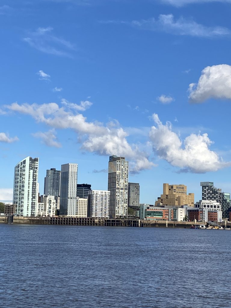Nach 16 Kilometern (etwa 19.949 Schritte) – was mir wie eine „Long and Winding Road“ vorkommt – steige ich auf ein Fährschiff, das früher Arbeiter über den Mersey brachte. Fast fühle ich mich wie in einer „Yellow Submarine“,während ich hin und zurück fahre und die großartige Perspektive auf die modernen und historischen Gebäude genieße, die ich mir heute alle aus der Nähe angesehen habe.