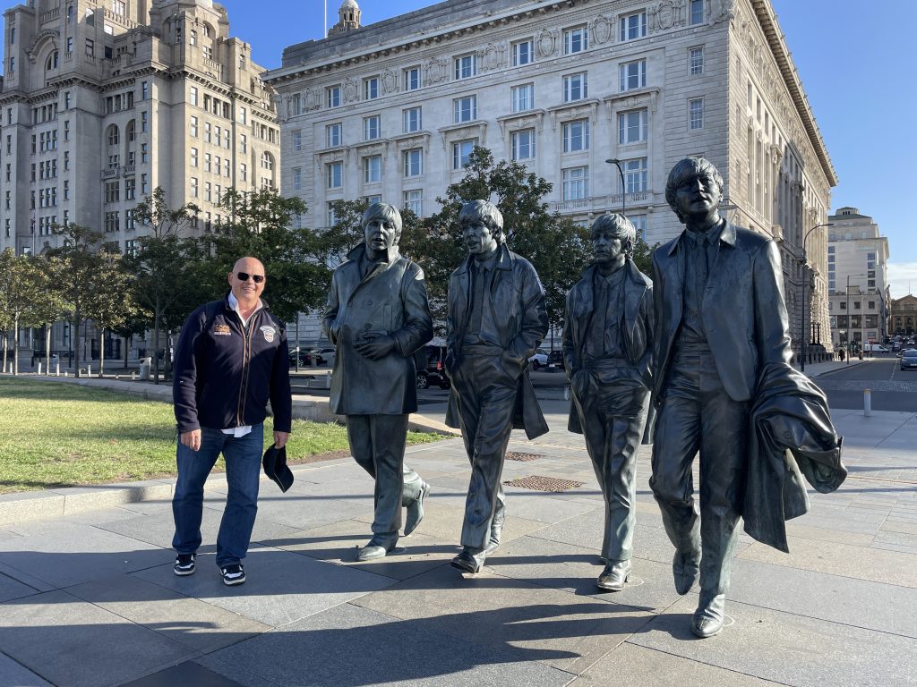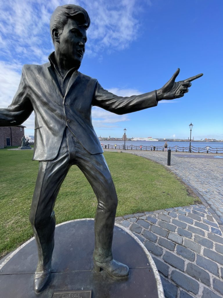 Wie auf einer Perlenkette reihen sich entlang des Flusses große, neue Gebäude mit faszinierender Architektur aneinander. Museen, Ausstellungs- und Messehallen bilden eine moderne Skyline. Zentraler Anlaufpunkt ist das Albert Dock, wo mich eine Bronze-Gestalt begrüßt: Billy Fury, der „englische Elvis“, dessen Name ich bis heute nicht kannte. Diese Statue wurde 2003 von Liverpool-Bildhauer Tom Murphy geschaffen und durch sechs Jahre Spendensammlung von Fans finanziert – eine schöne Geste für einen lokalen Helden, „Getting by with a Little Help from (his) Friends“.