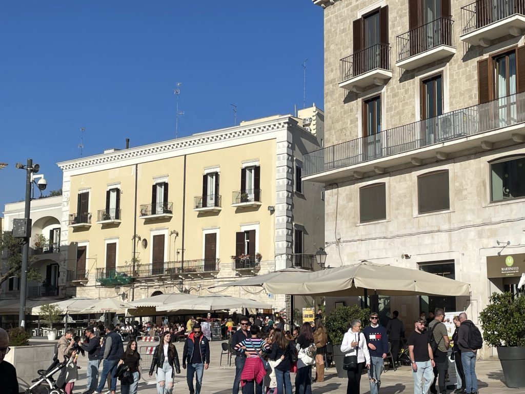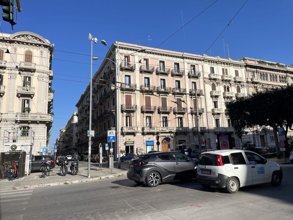 Vom Bahnhof Bari Centrale zur Unterkunft im achten Obergeschoss mit riesiger Dachterrasse ist es genau so weit, wie eine vierspurige Straße breit ist.