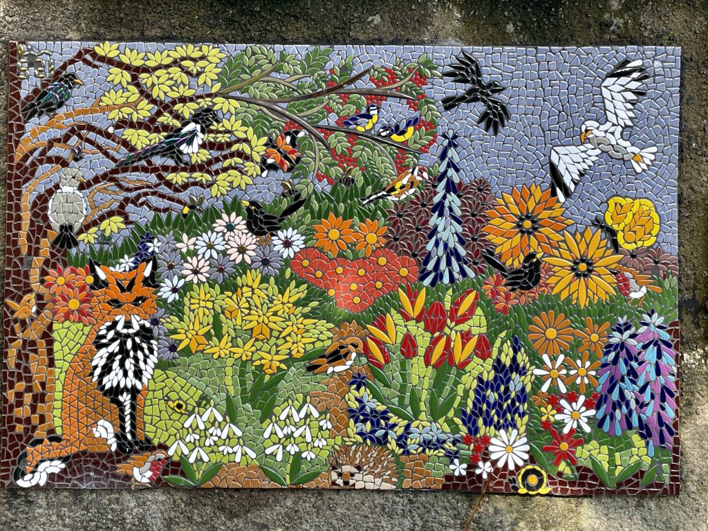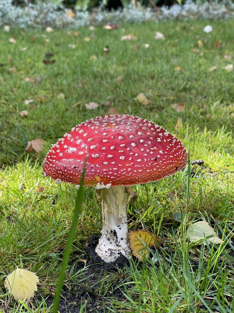 Zurück in Pennys Garten zeigt sie mir ihr farbenfrohes Mosaik, das an der Gartenmauer hängt – selbstgemacht und wetterbeständig. Der eigentliche Hingucker ist heute allerdings ein prächtiger Fliegenpilz, der zwischen zwei anderen Pilzarten wächst. Zum Glück stammen die Zutaten für das Curry, das sie am Abend kocht, nicht aus dem eigenen Garten. Bei dieser Pilzauswahl wäre das keine gute Idee.