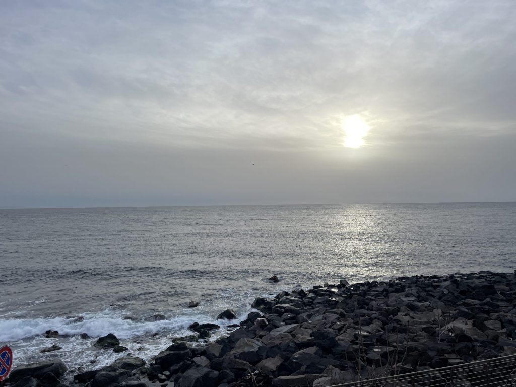 Nach dem Mittagschlaf sah die Welt draußen wie davor aus, es regnete ununterbrochen. Ich machte es mir vor dem Fenster gemütlich und während ich auf das Meer blickte, hörte ich ein Hörbuch. Die heiße Tasse Milchkaffee dampfte. Ich stelle fest, mehr faul sein kann ich nicht.