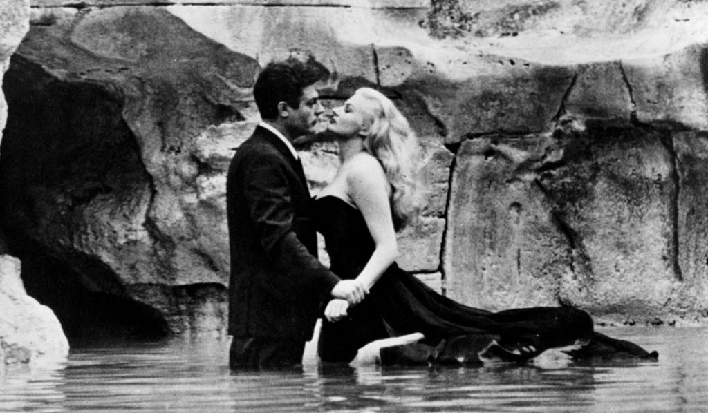 Die berühmte Szene im Trevi-Brunnen ist dafür ein gutes Beispiel. Anita Ekberg steigt in dieses barocke Monument, als wäre es ein privates Schwimmbecken. Marcello steht daneben, fasziniert und doch außen vor. Der Moment ist schön, aber auch seltsam leer. Man spürt, wie aus einem Sehnsuchtsort ein Bild wird, das man anschaut, ohne es zu fühlen.