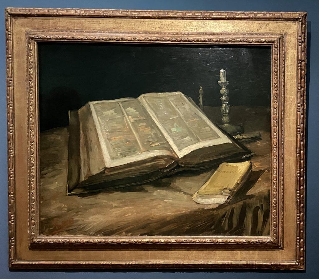 Dieses Stilleben gefällt mir besonders gut, weil es die tiefe Religiosität van Goghs ausdrückt. Wir sprachen unter anderem über die Briefe, die Vincent an seinen Bruder Theo geschrieben hat. Sie geben einen tiefen und berührenden Einblick in die Gefühlswelt ihres Verfassers. Die Briefe sind ein großartiges Dokument brüderlicher Liebe, das in der Kunst- und Literaturgeschichte wohl einzigartig ist. Hier ein Link zu einer sehr kleinen Auswahl der Briefe. Ich empfehle jedoch die Gesamtausgabe der Briefe in Buchform.