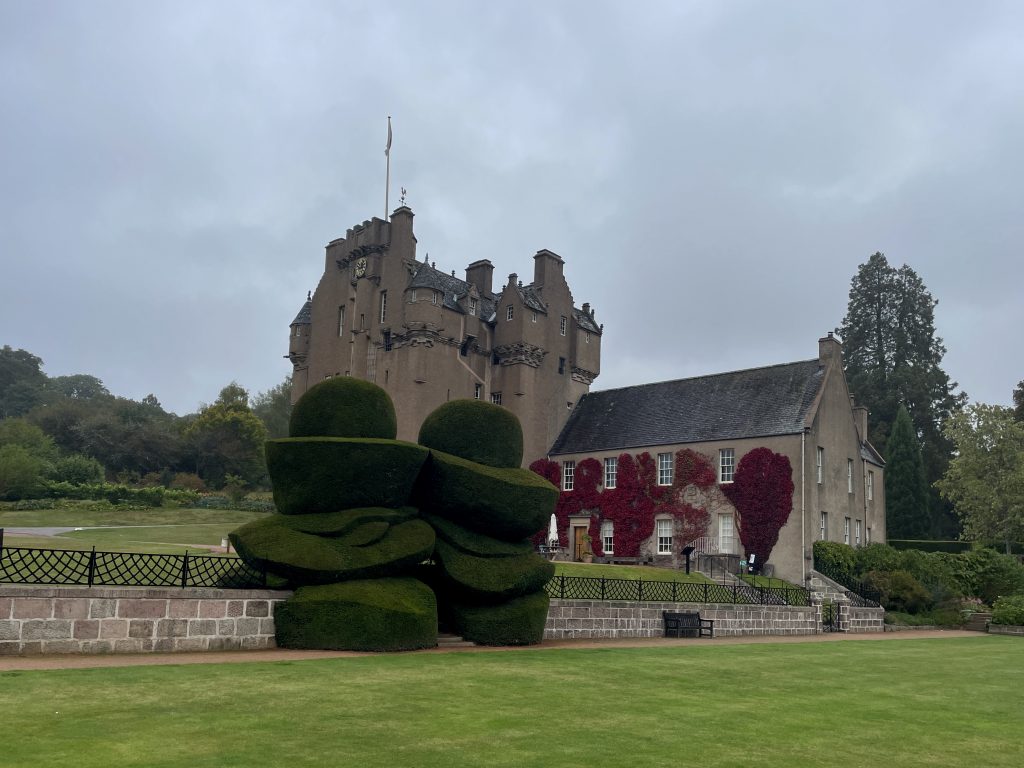 Eine halbe Stunde Autofahrt westwärts am Dee entlang führt mich nach Crathes. Der Fluss mäandert hier noch in seinem natürlichen Bett und ist herrlich anzuschauen. Um diese Pracht so richtig zu genießen, haben sich Männer mit Gummistiefeln und langen Ruten ausgestattet und sich mitten hineingestellt. Mir genügt ein Spaziergang am Ufer und durch die berühmten Gärten von Crathes Castle, diesem prächtigen Schloss aus dem 16. Jahrhundert.