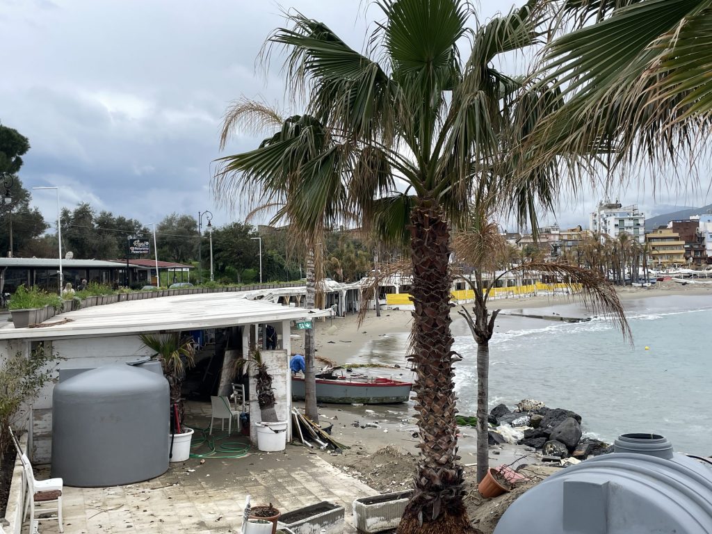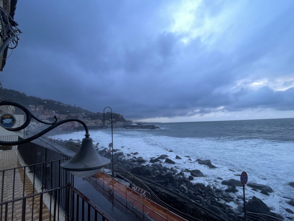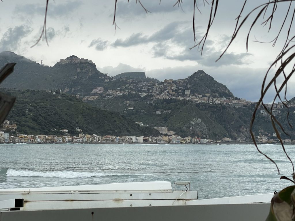 Am Nachmittag hört es auf zu regnen und ich fahre nach Giardini Naxos, das zu Füßen von Taormina am Ionischen Meer liegt. Die vielen kleinen Restaurants am Strand weisen schwere Sturmschäden auf – Spuren des Zyklons Harry, der im Januar die Küste verwüstet hatte.