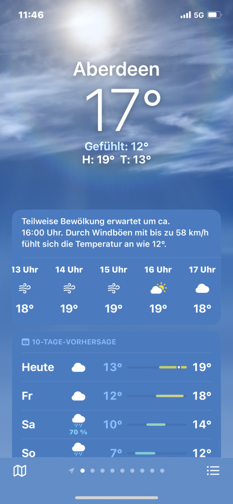 Zuneigung hat zwei Seiten. In der Nacht sprang die Katze mehrfach in mein Bett. Das war ziemlich ok, aber nicht ok war, dass sie auf meinen Kopfkissen – nicht etwa dem unbenutzten Kopfkissen liegen wollte. Sie blieb kompromisslos. Etwas verspannt wache ich auf, um die eingeforderte Morgenkuschelei zu absolvieren. Die Sonne lacht bei 19 Grad – ein freundlicher Empfang für den Tag.