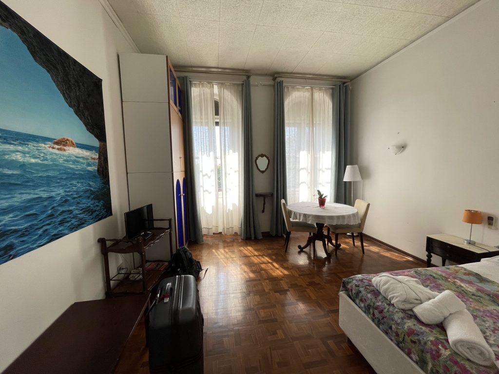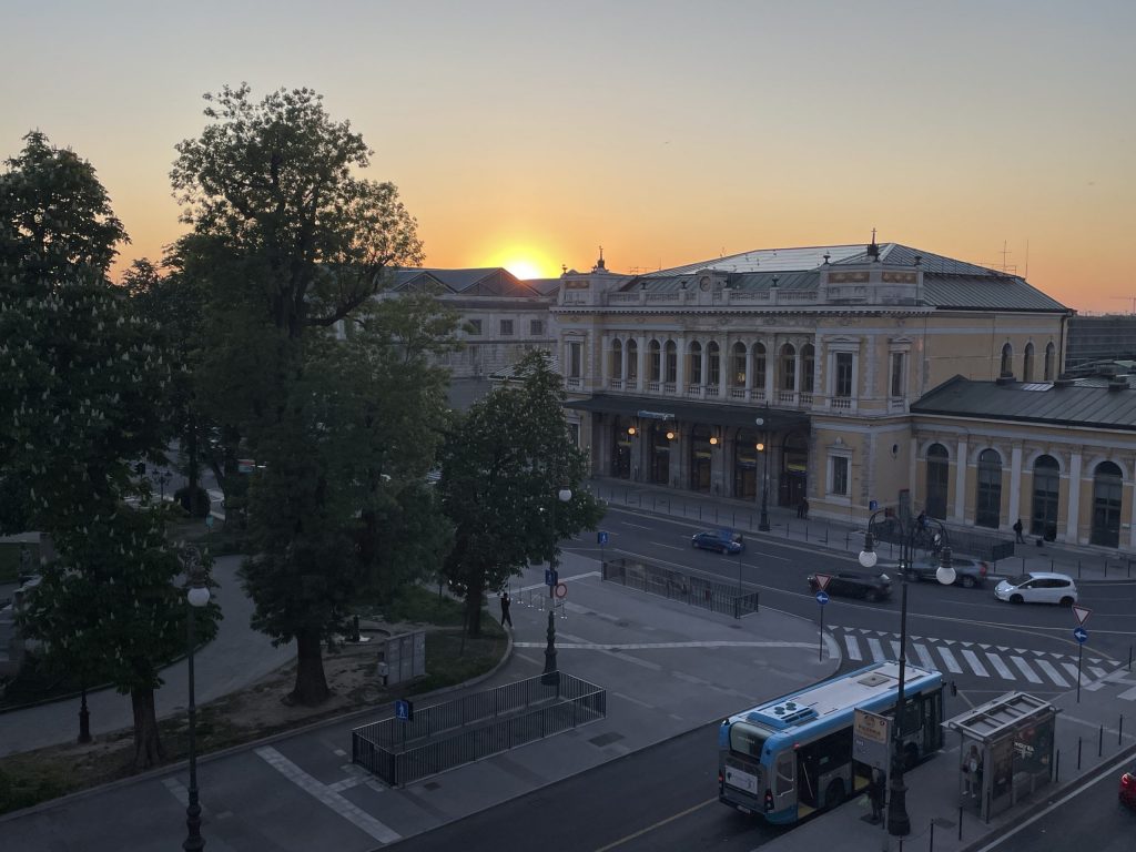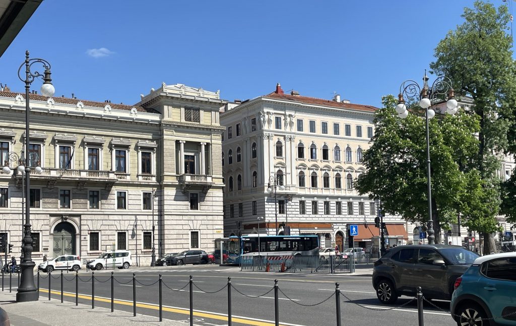 120 Meter vom Triester Bahnhof entfernt steht ein Haus aus dem 19. Jahrhundert, das so tut, als sei es gerade erst aus dem Roman von Pascal Mercier „Das Gewicht der Worte“ gefallen, der zum Teil in dieser Stadt spielt. Der Fahrstuhl – klapprig, aber mit Sitzbank – stammt vermutlich aus derselben Epoche. Er bringt mich in den dritten Stock, wo ich ein Zimmer beziehe, das so groß ist, dass man darin problemlos einen kleinen philosophischen Salon gründen könnte. Der Blick geht auf den Bahnhof und den Park, und die Oberstadt leuchtet im Sonnenlicht, das Karstgestein glitzert wie frisch poliert.