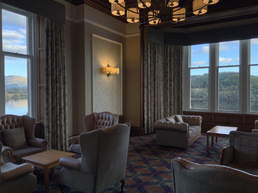 Das Loch Awe Hotel war ein Hotel aus der Zeit des Empires – alles wirkte wie die Kulisse eines Jane-Austen-Films. Mir gefiel es. Das Abendessen wurde im großen Speisesaal mit Kronleuchtern gereicht, während draußen der schottische Abend hereinbrach.