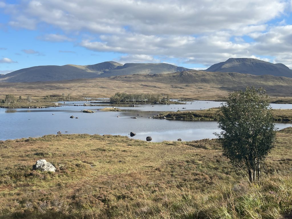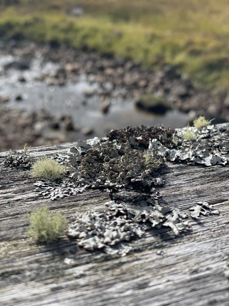 Beim Kings House Hotel im Rannoch Moor aß ich eine kleine Suppe – ein Trick, um das Geld für den Parkplatz zu sparen, denn Gäste parkten kostenlos. Dann wanderte ich ein gutes Stück auf dem 19 Kilometer langen Weg durch diese stille, weite Heide- und Moorlandschaft, die mit ihrer kargen Schönheit bezauberte. Die Moose und Flechten auf einem Holzgeländer erinnerten mich an die winzigen Pflanzen, die auf den isländischen Lavafeldern wachsen. Sie bereiten den Nährboden für die höherwachsenden Pflanzen, die in ein paar Jahrhunderten hier wachsen werden.