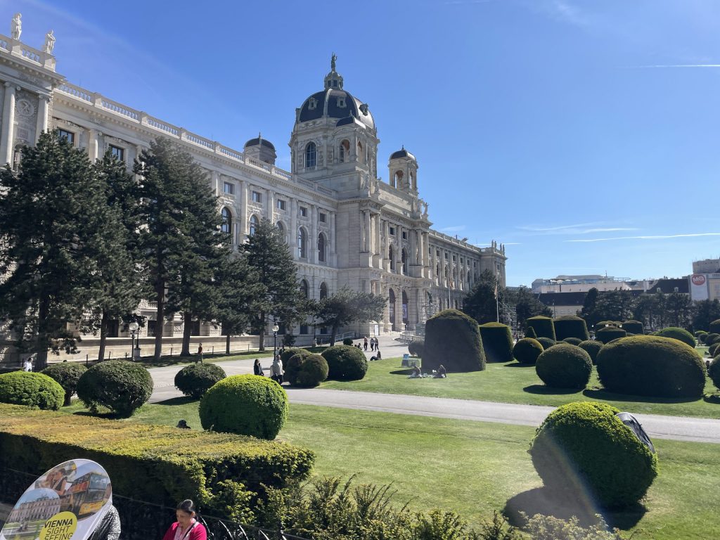 Dass es hier riesige Paläste und Palais mit umliegenden Gärten gibt, breite Prachtstraßen, viele kleine Parks und noch mehr Alleebäume, verwundert bei einer ehemaligen Kaiserresidenz nicht. Wien war jahrhundertelang Zentrum des Habsburgerreiches und dieser Glanz ist noch überall zu spüren. Ich sah mir nichts im Detail an, sondern stieg immer nur von einer Linie in die nächste um, um den Tag möglichst umfassend zu nutzen. Die Kommentare im Bus waren mit Musik von Mozart, Beethoven und Strauß unterlegt, was die Fahrten auch zu einem angenehmen musikalischen Erlebnis machte.