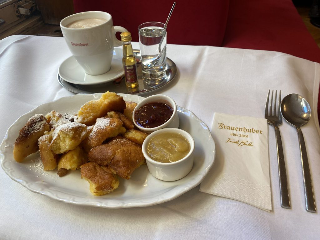 Ich führte nichts auf, sondern stillte meinen Hunger und bestellte eine Mehlspeise: Kaiserschmarrn mit Apfel- und Pflaumenkompott, dazu eine Wiener Schokolade mit 38 Prozent Rum. Es war erst das zweite alkoholische Getränk dieser Reise und machte die anschließende Busfahrt angenehm beschwingt. Die vierte Linie nehme ich morgen Vormittag.