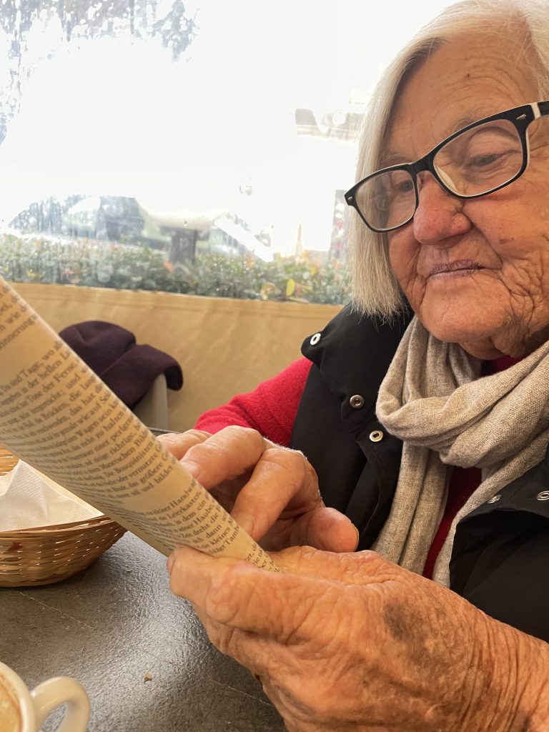 Gesprächsthemen mit Erika fließen wie selbstverständlich ineinander. Wir beginnen bei der Tradition der Insel, bei einem Ballett im Fernsehen oder bei einem Rezept für Artischocken und landen plötzlich bei Rainer Maria Rilke und Emmanuel Levinas.