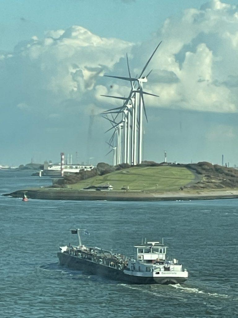 Die Überfahrt war ein Genuss: Sonne satt, windgeschützte Ecke, 20 Grad. Das Meer war ruhig, und hunderte Windräder drehten sich fleißig. Der Wind treibt heute keine Dreimaster wie die Cutty Sark über das Meer, sondern treibt Rotoren zur Stromgewinnung.