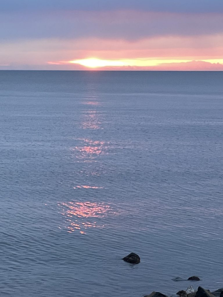 Als der Morgen anbrach, sah der Blick übers Meer zum Horizont aus wie ein Gemälde von Marc Rothko. Wenige Minuten später änderten sich die Farben. Was für ein Fest der Farben.